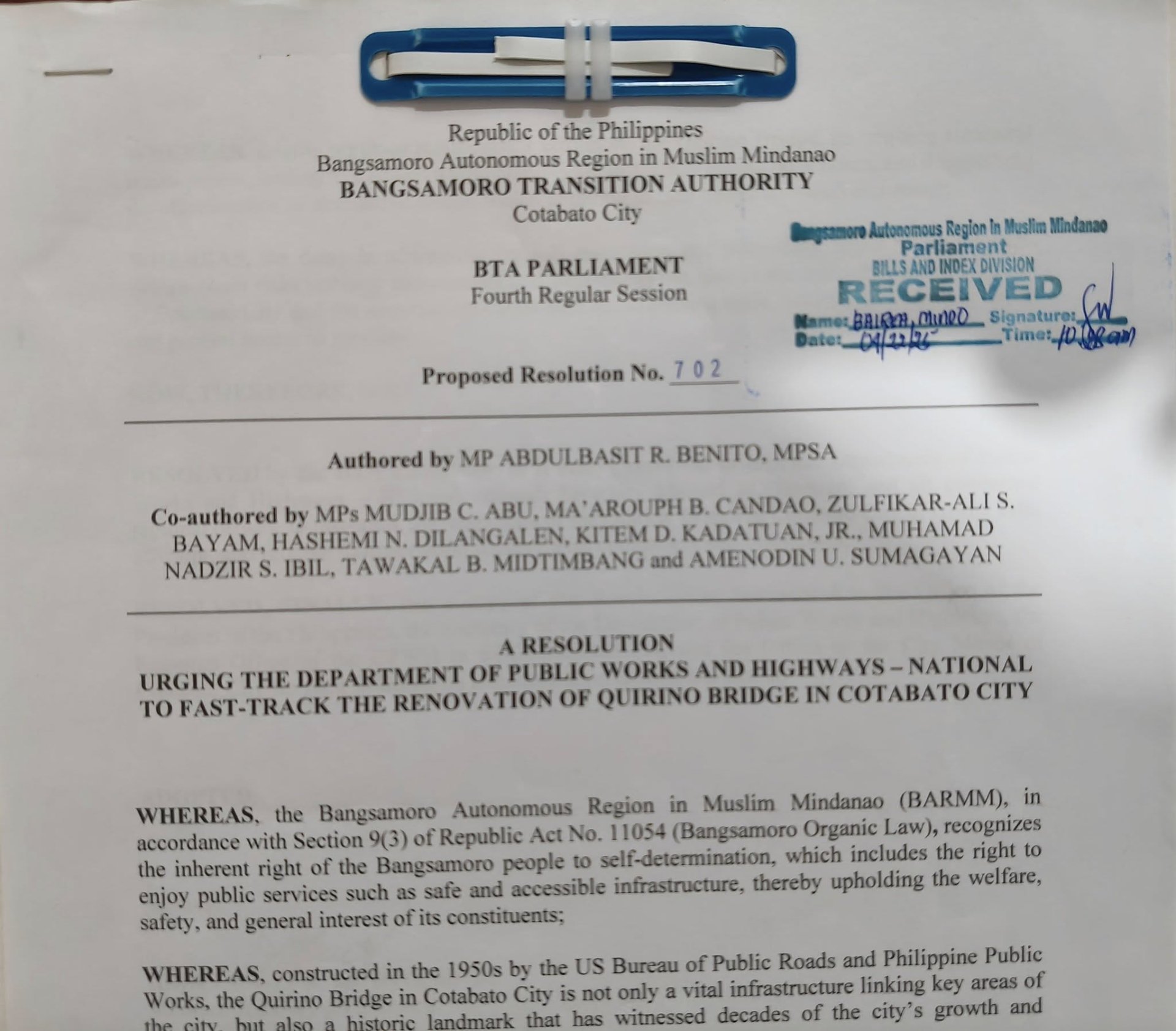 COTABATO CITY – April 8, 2025 — In a move driven by public concern and long-standing delays, Member of the Parliament Abdulbasit R. Benito of the Bangsamoro Parliament filed a resolution before the re...