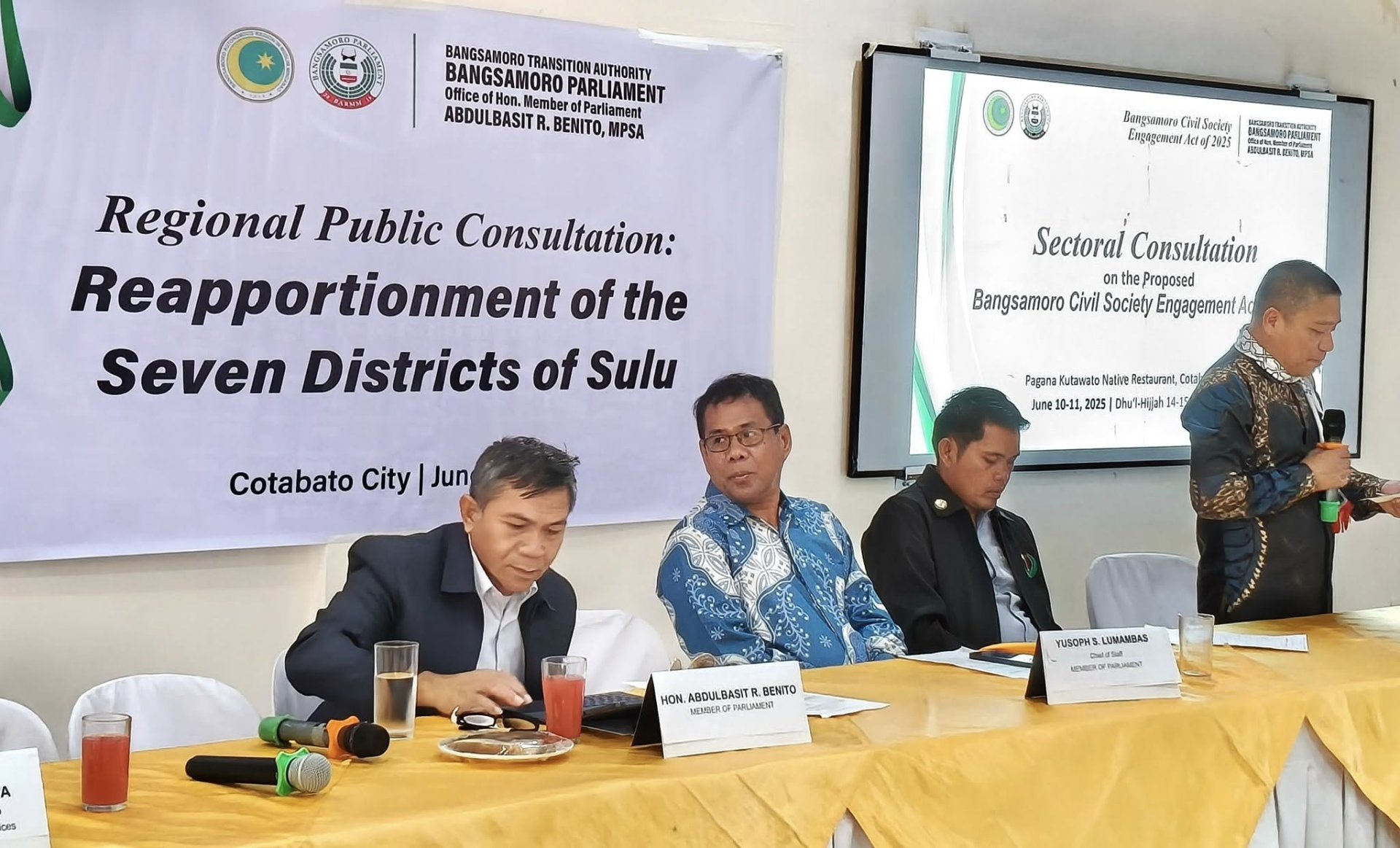 Midsayap, North Cotabato – Member of Parliament Abdulbasit R. Benito actively participated in the public consultation on the proposed bill seeking to reapportion the seven districts of Sulu, held this...